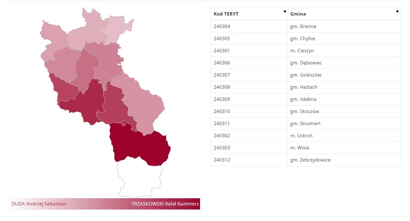 Częściowe wyniki głosowania w drugiej turze w Powiecie Cieszyńskim